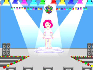 Use the coloured buttons on the screen to change the backdrop to that colour. For example, if you press the red button, the backdrop should change to a red background.